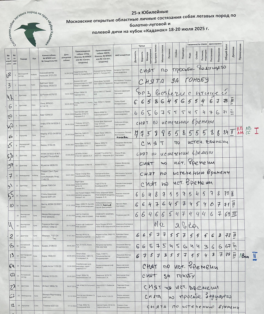 25-е Юбилейные полевые состязания собак легавых пород по болотно-полевой дичи